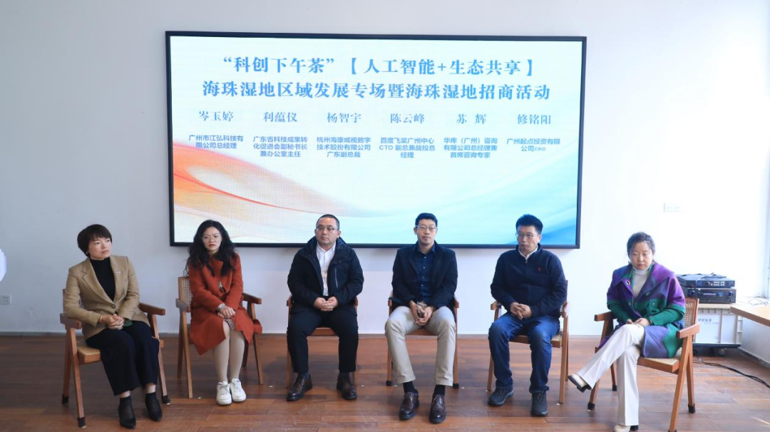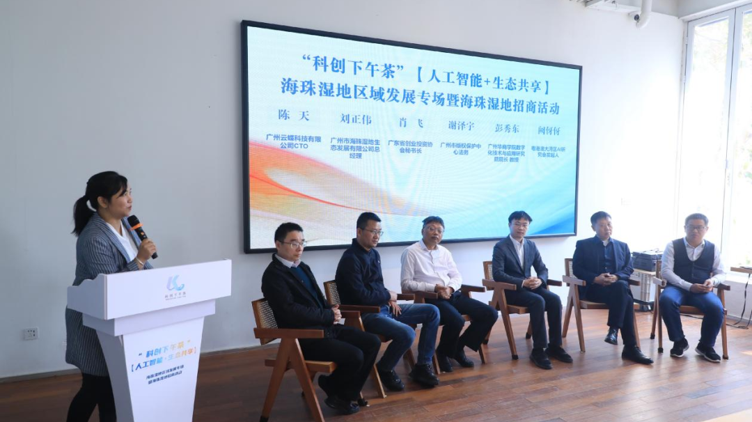作为我国特大城市中心区的最大国家湿地公园,海珠湿地承载着厚重的农业文化、融合着城市与自然的美景,成为候鸟迁徙的重要通道以及岭南文化和生态文化的汇聚地。在这块具有独特属性和功能的土地上,如何在城市化进程和数字经济的快速发展中保持生态系统的稳定和经济的可持续发展,推动人工智能与生态共享的融合发展,是与会者们的“下午茶”讨论主题。