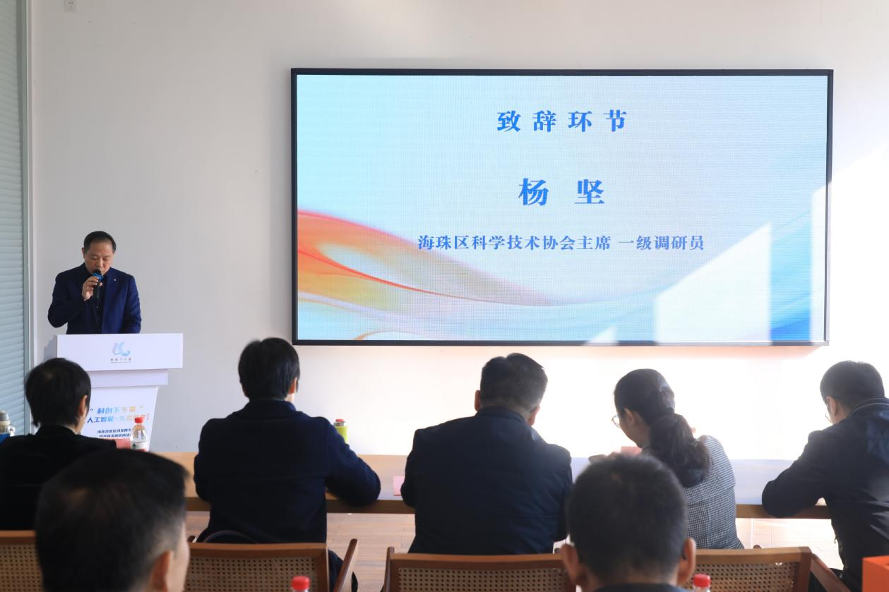 海珠区科学技术协会主席、一级调研员杨坚在现场致辞中提到,近年来海珠区聚集创新驱动,构建了以人工智能、数字经济等为主导的现代产业体系,为区域发展注入了强劲动力,同时,海珠区也坚守着生态优先,积极探索湿地生态修复与科技赋能的协同发展模式,让海珠湿地成为城市绿肺与科技创新的典范。他表示,希望借助本次“科创下午茶”集结行业精英的智慧,共绘海珠湿地智慧生态新蓝图。